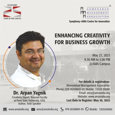 Conducted a session at the AMA in Ahmedabad, India, on enhancing creativity for business growth, sharing insights on how creative thinking can unlock innovation and drive success.