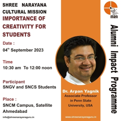 Addressed students at SNCM, Ahmedabad, on the importance of creativity in education as part of their Alumni Impact Programme.