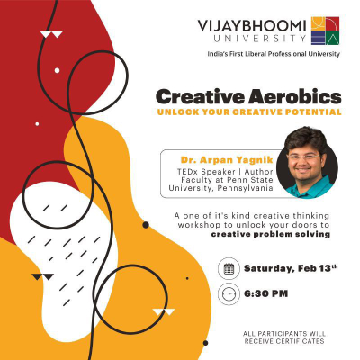 Conducted a Creative Aerobics workshop at Vijaybhoomi University at Karjat, India, guiding students to unlock their creative potential and approach problem-solving with innovation.