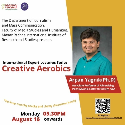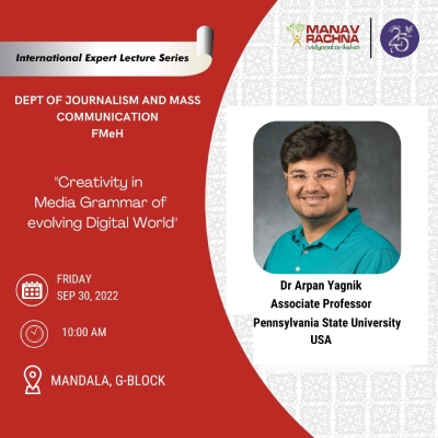 Delivered an expert lecture at Manav Rachna University in Faridabad, India, on ‘Creativity in Media Grammar of the Evolving Digital World’, highlighting creativity’s role in shaping digital media.