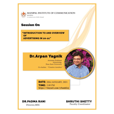 Conducted a workshop talking about the nuances of advertising at Manipal Institute of Communication in January 2021