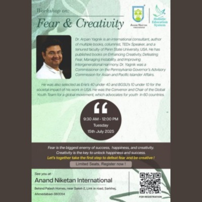 Delivered a talk on fear and its impact on creativity on 15th July, 2025 at Anand Niketan International School in Ahmedabad.